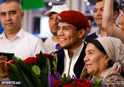 Akhmadaliev, the first unified world champion from Uzbekistan, returned to his home country today. He was welcomed by many boxing fans, officials, his parents and journalists at the Tashkent International Airport.