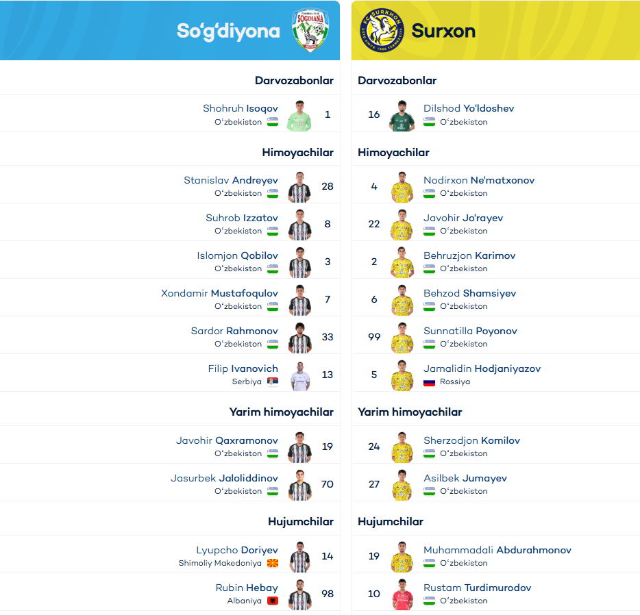 Суперлига. "Сўғдиёна" – "Сурхон": Таркиблар билан танишинг!