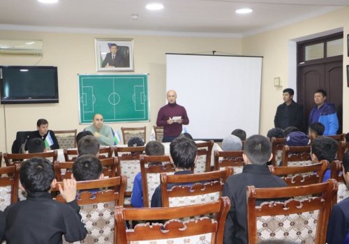 In the afternoon, the head of the UFAnational teams Department, Usmon Toshev, and the head coach of the Uzbekistan U-15 national team, Server Dzheparov, met with young football players from Andijan.