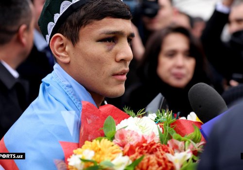 The 25-year-old backed home as he received a heroic welcome at the Tashkent International Airport.