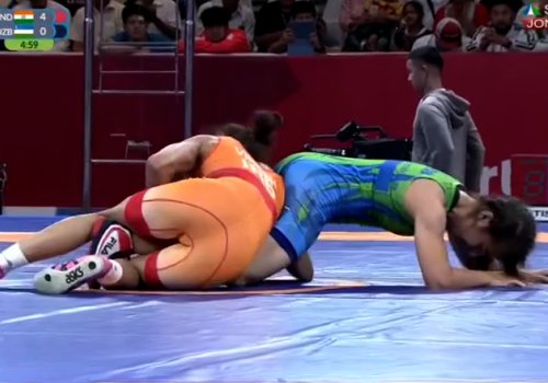 Кун дастуридан ўрин олган аёллар кураши баҳсларида 50 кг вазн тоифасидаги ҳамюртимиз Давлатбике Яхшимуратова 1/2 финал босқичида ҳиндистонлик Винеш Винешга қарши гиламга кўтарилди.