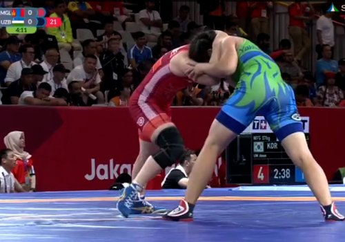 Кун дастуридан ўрин олган аёллар кураши баҳсларида 50 кг вазн тоифасидаги ҳамюртимиз Давлатбике Яхшимуратова 1/4 финал босқичида мўғулистонлик Нарангерел Эрденесухга қарши гиламга кўтарилди.