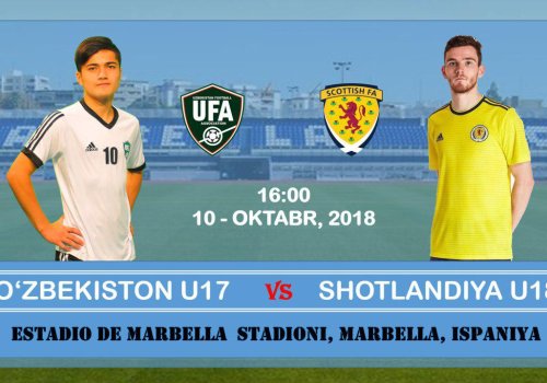 ЎФА матбуот хизмати халқаро мусобақада бугун Ўзбекистон U-17 терма жамоаси оқ, Шотландия U-18 терма жамоаси эса сариқ рангли либосда тўп тепишини маълум қилди.