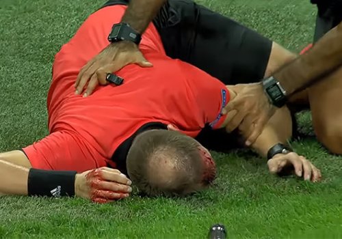 Европа лигасида мухлислар ҳакамнинг бошини ёришди (ФОТО, ВИДЕО)