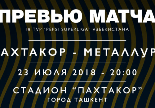 В рамках 18-го тура Pepsi Суперлиги «Пахтакор» проведет встречу против бекабадского «Металлурга». Этот матч станет 41-ым между командами. На счету «Пахтакора» 33 победы, 4 ничьих и 4 поражения. В ворота «Металлурга» столичная команда забила 109 голов и 32 пропустила.