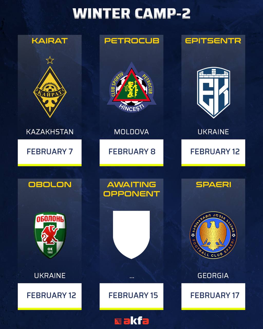 "Шерлар" 7 февраль куни Қозоғистоннинг кўп карра чемпиони "Қайрат" клубига қарши майдонга чиқади. Мазкур йиғинни фақатгина Дилшод Абдуллаев бетоблиги туфайли вақтинча ўтказиб юбормоқда. Муҳаммадқодир Ҳамралиев ва Абдурауф Бўриевнинг ҳолатлари анча яхши. Азизбек Турғунбоев ҳам шу кунларда умумий гуруҳга қўшилади. Қолганлар соппа-соғ", - ёзди клуб матбуоти.