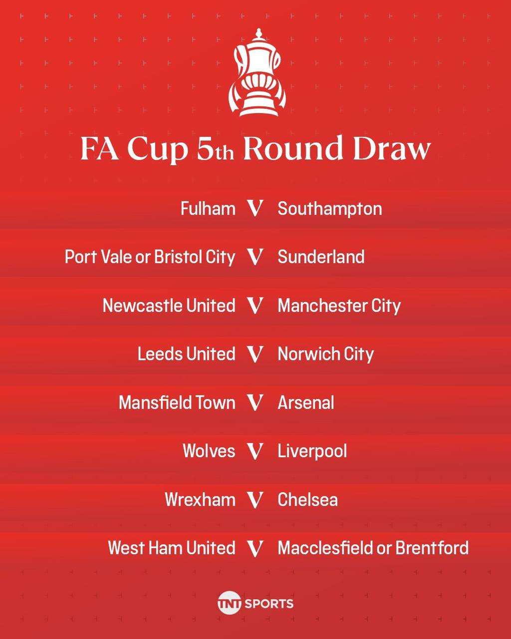 Англия кубогининг 1/8 финал босқичига қуръа ташланди. Унга кўра, "Манчестер Сити" "Ньюкасл"га қарши баҳс олиб боради. Шунингдек, "Челси" қуйи дивизион жамоаси билан куч синашса, "Ливерпуль" кейинги босқич йўлланмаси учун "Вулверхэмптон" қарши ўйнайди. Қуйида жуфтликлар билан тўлиқ танишиб чиқишингиз мумкин.