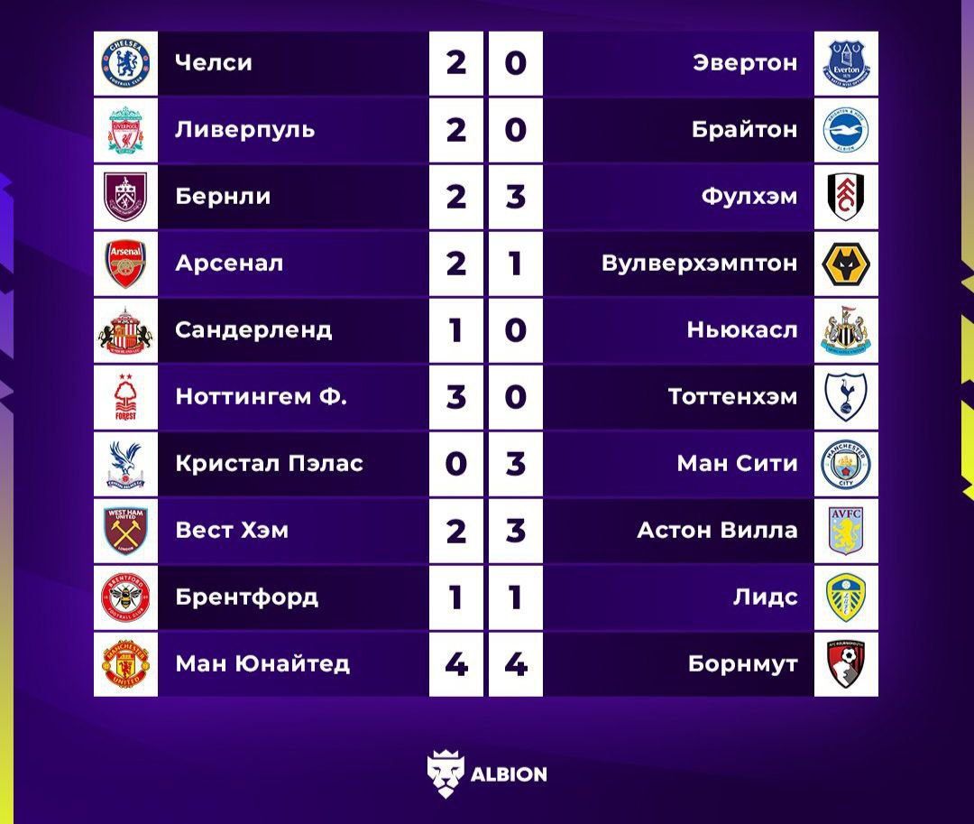 АПЛ. 16-турда қайд этилган натижалар ва турнир жадвалидаги ҳолат билан танишинг