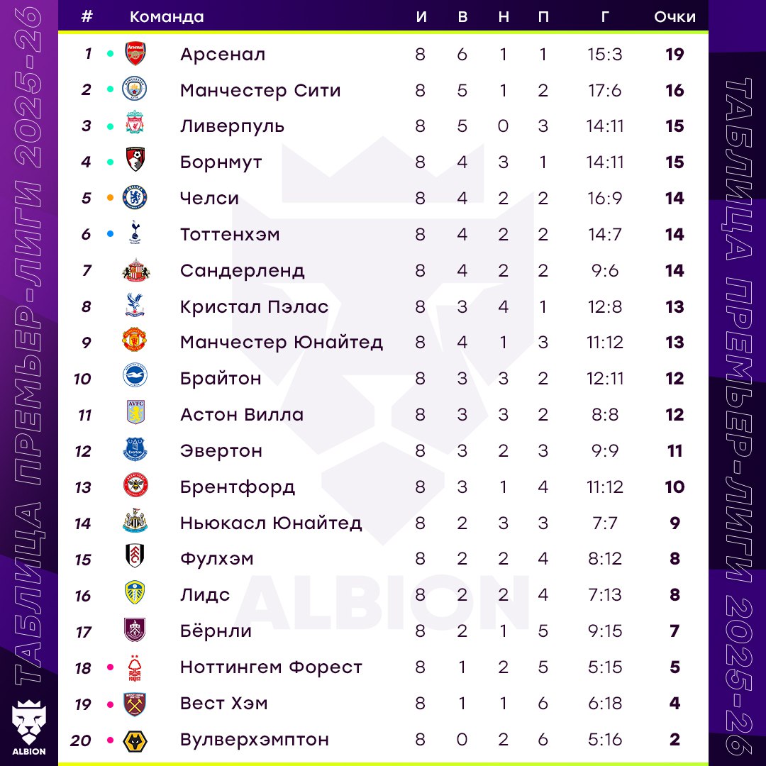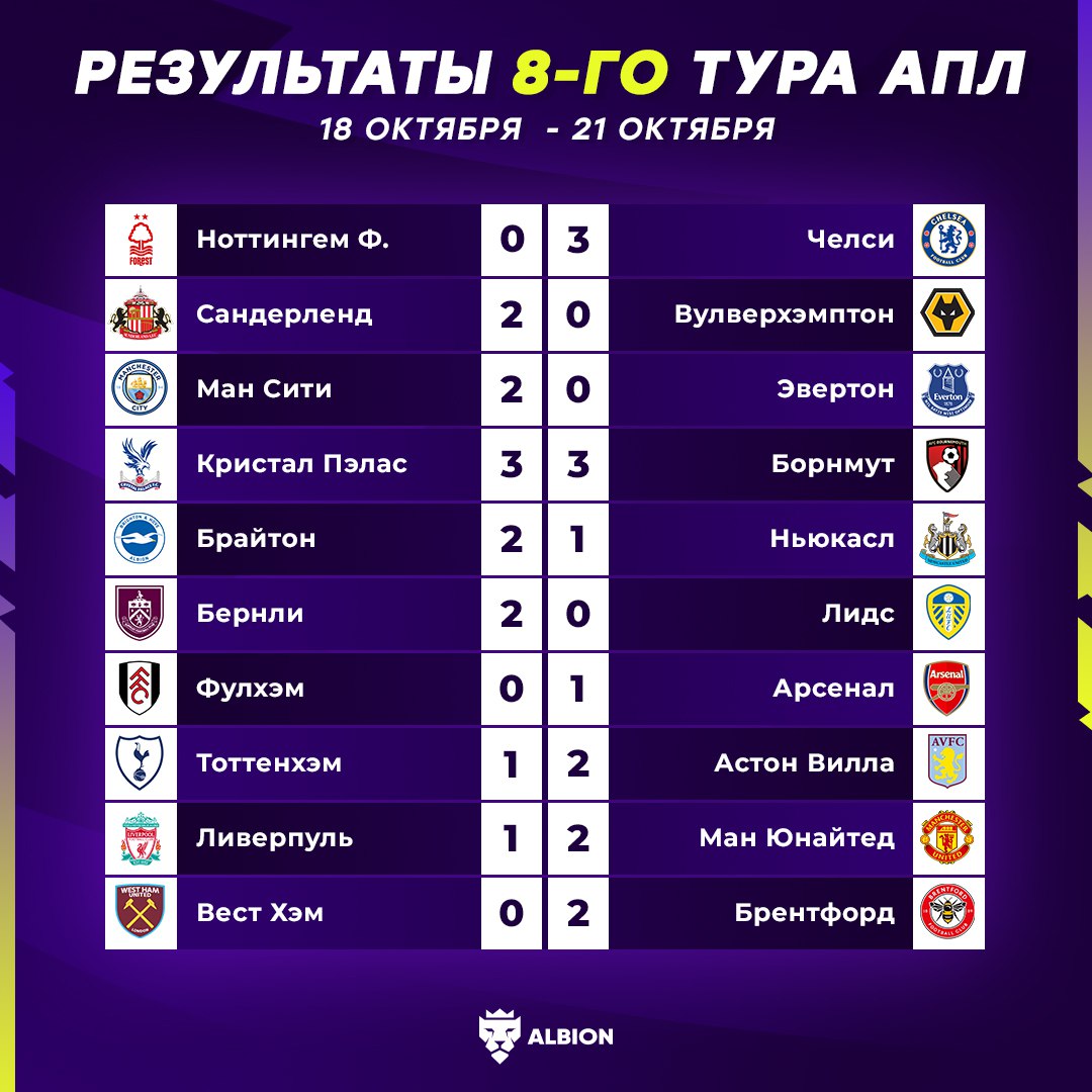 АПЛ. 8-турда қайд этилган натижалар ва турнир жадвалидаги ҳолат билан танишинг