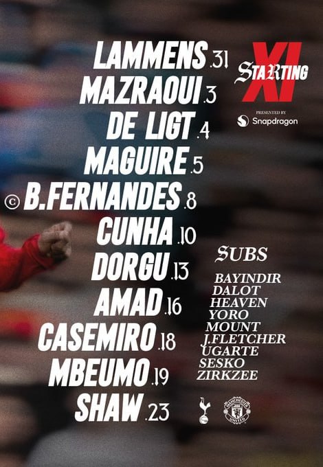 Англия Премьер-лигасининг 11-тури доирасидаги “Тоттенхэм” — “Манчестер Юнайтед” учрашуви бошланиш арафасида. Қуйида марказий баҳс учун клубларнинг асосий таркиблари билан танишинг.