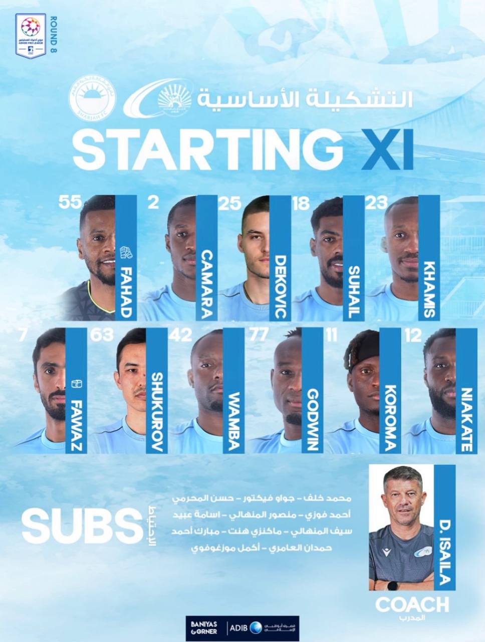 Бироздан сўнг БАА Премьер-лигаси 8-туридан ўрин олган "Шаржа" - "Банияс" жамоалари ўртасидаги ўйин бошланади. Беллашув олдидан асосий таркиблар билан танишинг.