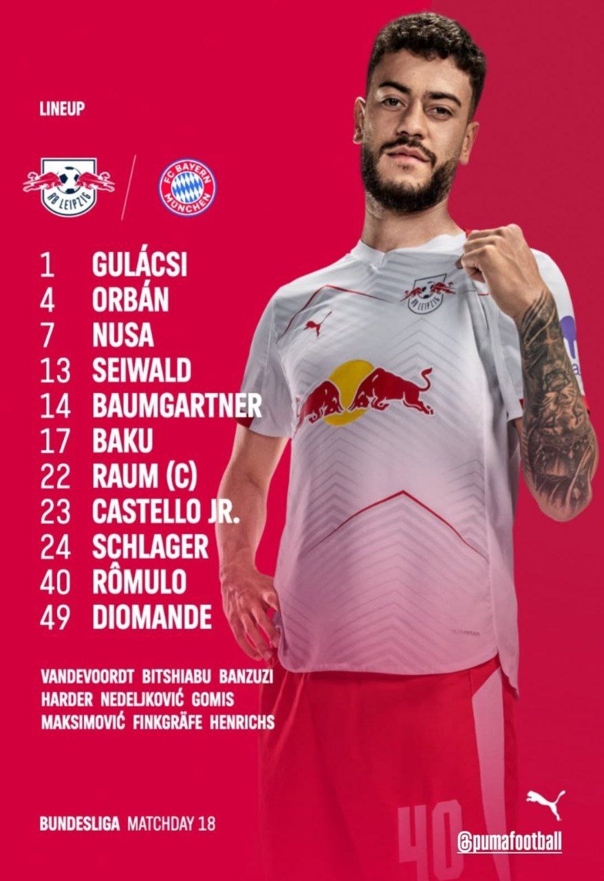 Бироздан сўнг "Лейпциг" - "Бавария" баҳси бошланади. Ўйин олдидан асосий таркиблар билан танишинг.