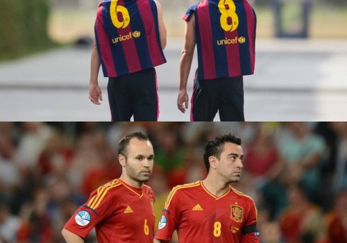 Қизиқ факт. Сезганмисиз йўқми, Хави ва Иньеста "Барселона" ҳамда Испания терма жамоасида ҳар хил рақамларда ўйнаган. "Барса"да Хави 6, Андрес 8. Испанияда эса тескариси, Хави 8, Иньеста 6. Биз шарҳловчилар сезардик, чунки бу нарса озгина адаштирарди.