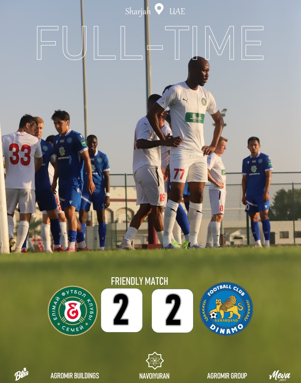 Вадим Абрамов шогирдлари Шаржа шаҳрида Қозоғистон Премьер-лигасида 4-ўринни эгаллаган "Елимай" клубига қарши саф тортди. Қизиқарли кечган баҳсда жанговар дуранг қайд этилди – 2:2. "Динамо"нинг голларига Жаҳонгир Абдусаломов ва Улуғбек Ҳошимов муаллифлик қилди.