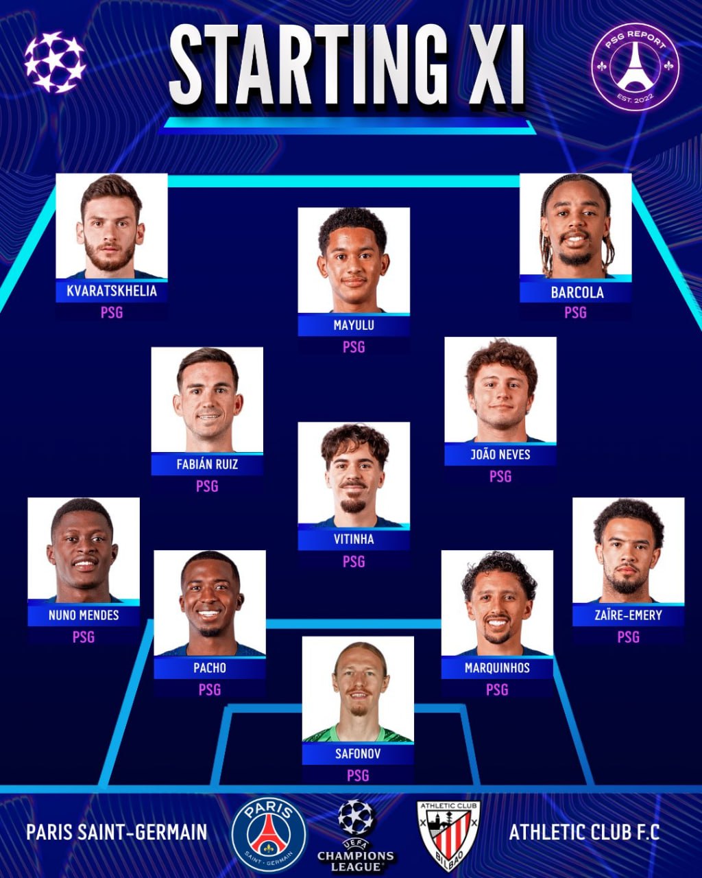 UEFA Chempionlar ligasining 6-turidan o‘rin olgan "Bryugge" - "Arsenal", "Bayer" - "Nyukasl Yunayted" hamda "Atletik Bilbao" - PSJ klublari o‘rtasidagi bellashuvlar boshlanish arafasida. Mazkur uchrashuvlar uchun jamoalarning boshlang‘ich tarkibi bilan tanishing.