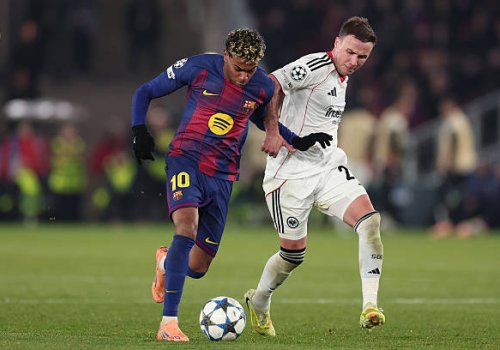 "Айнтрахт" беллашувнинг 21-дақиқасида Жоан Гарсия дарвозасини ишғол қилди. Иккинчи бўлим аввалида германияликлар хавфли ҳужумлар уюштирди. "Барселона" эса 2 та гол билан жавоб бериб, ҳисобда олдинга чиқиб олди. Каталонияликлар ҳимоячиси Кунде 3 дақиқа ичида дублни расмийлаштирди. Бу орада Ямал сариқ карточка билан жазоланди ва кейинги учрашувни ўтказиб юборади.