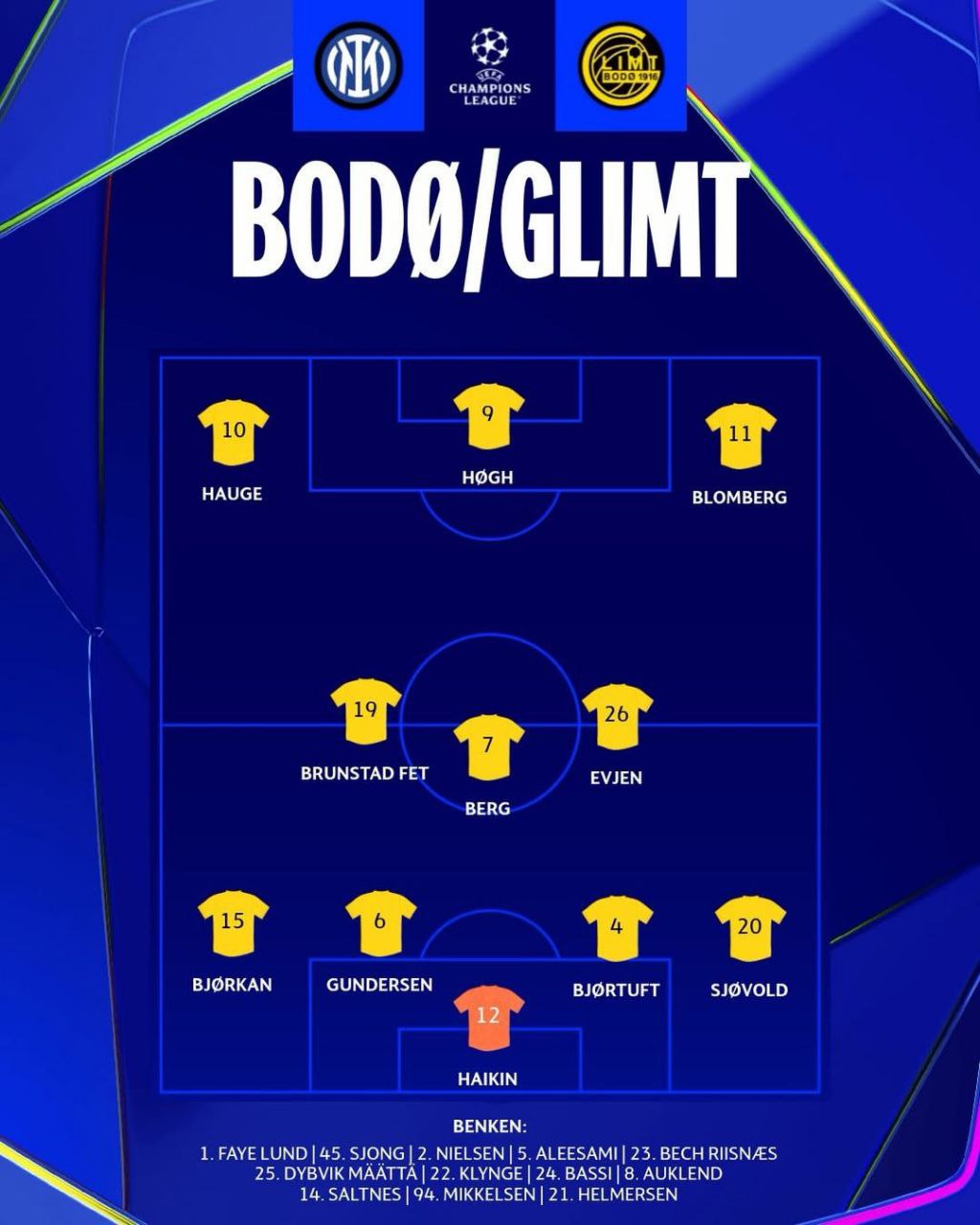 ЕЧЛнинг плей-офф босқичидан ўрин олган "Интер" — "Будё/Глимт" баҳси бироздан сўнг старт олади. Қуйида мазкур учрашув учун жамоаларнинг асосий таркиби билан танишишингиз мумкин.