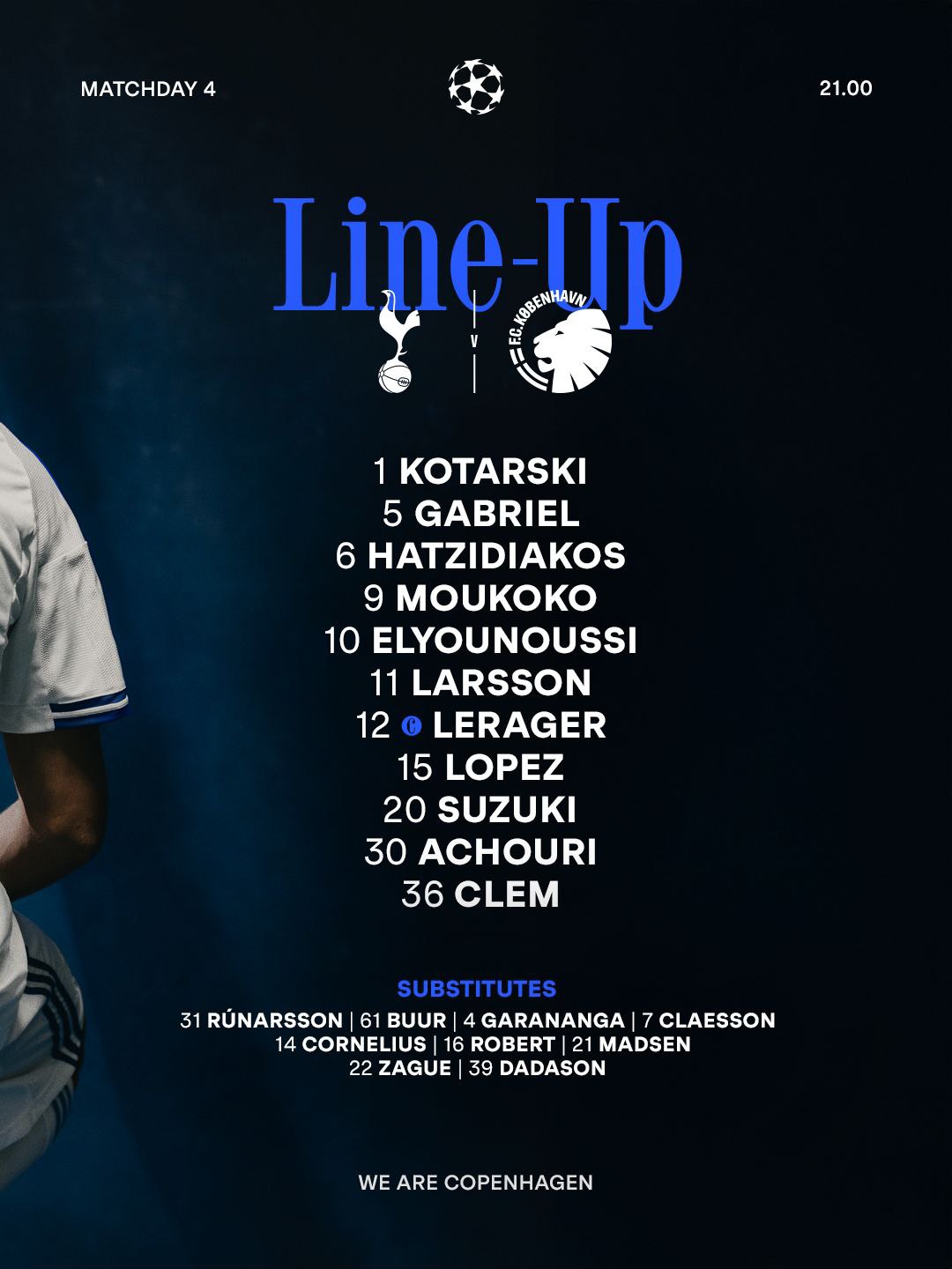Chempionlar ligasining 4-turi doirasida "Tottenhem"– "Kopengagen", "Atletiko" – "Yunion", "Yuventus" – "Sporting" jamoalari o‘rtasidagi o‘yinlar boshlanish arafasida. Quyida mazkur bahslar uchun klublarning asosiy tarkibi bilan tanishing.