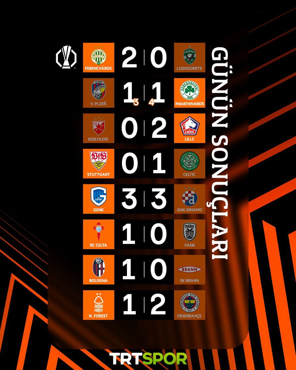Унга кўра, "Сельта" ўз майдонида ПАОКни 1:0 ҳисобида мағлуб этди. Шунингдек, "Болонья" ҳам "Бранн" устидан кичик ҳисобда ғалаба қозониб, кейинги босқичга йўл олди.