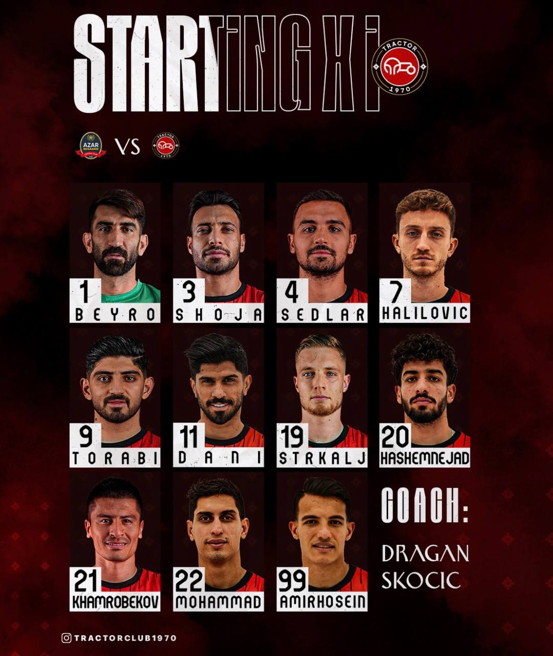Эрон чемпионатининг 15-турида "Шамс Азар" ўз майдонида "Трактор" жамоасини қабул қилади. Бироздан сўнг бошланадиган учрашув учун меҳмонларнинг асосий таркиби эълон қилинди. Одилбек Ҳамробеков илк дақиқалардан майдонда ҳаракат қилади.