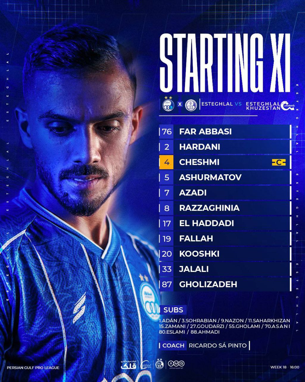 Эрон Про лигаси. "Истиқлол"нинг "Истиқлол Хузестан"га қарши асосий таркиби билан танишинг