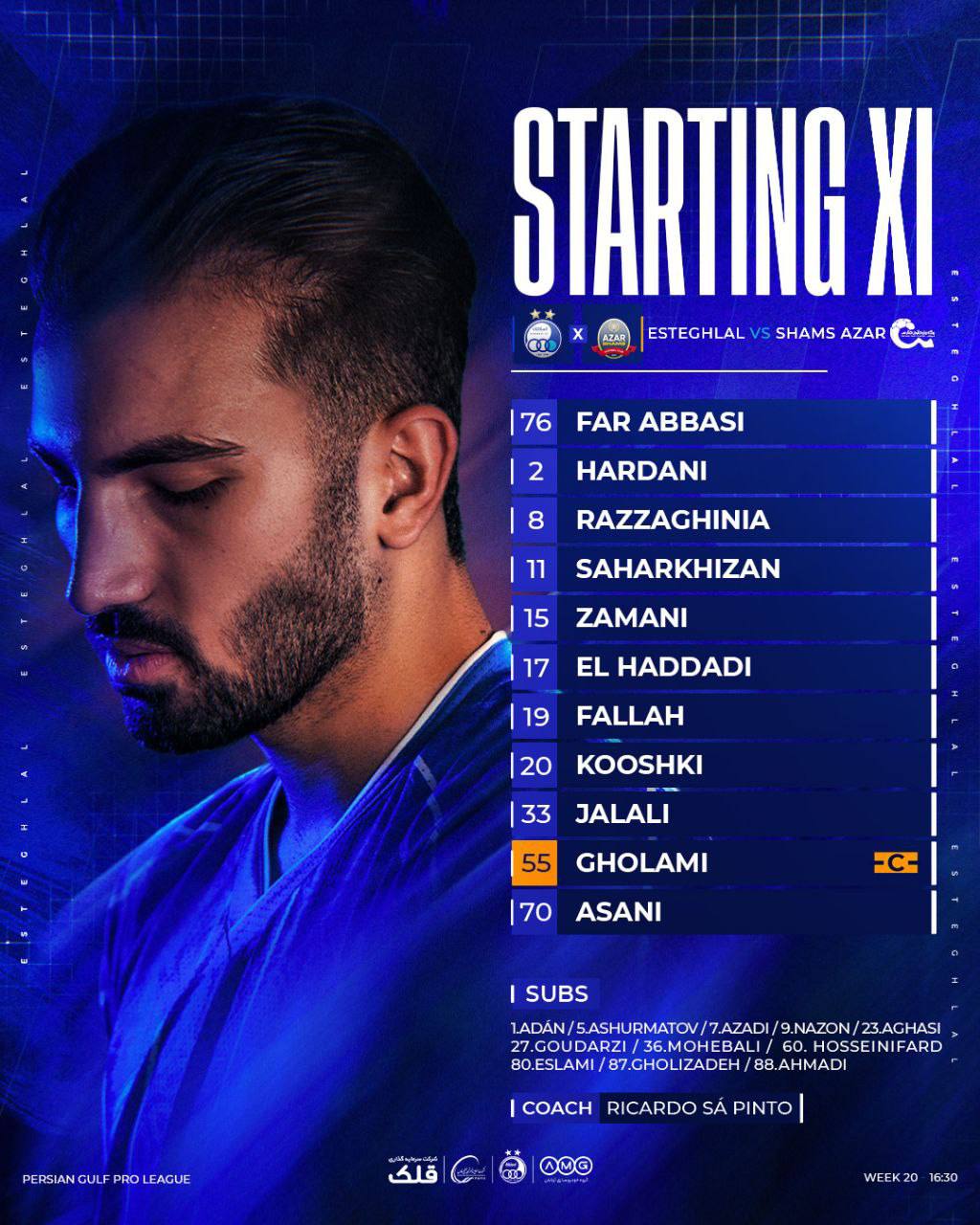 Эрон Про лигасининг 20-турида "Истиқлол" ўз уйида "Шамс Азар"ни қабул қилади. Мазкур баҳс учун мезбонларнинг асосий таркиби эълон қилинди. Ўзбекистонлик ҳимоячи Рустам Ашурматов захирадан жой олди.