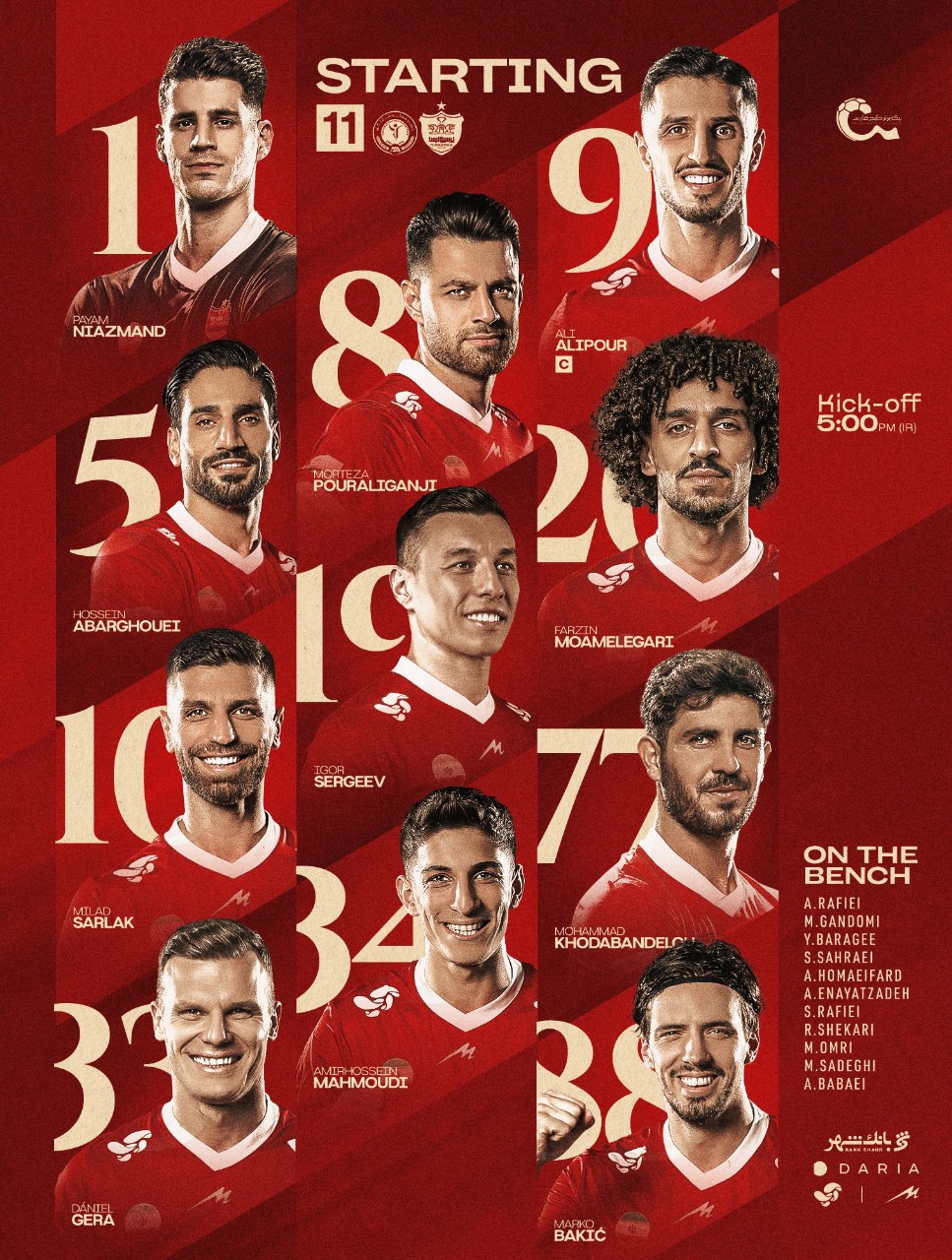 Эрон Про лигаси. "Персеполис"нинг "Гол Гохар"га қарши асосий таркиби эълон қилинди