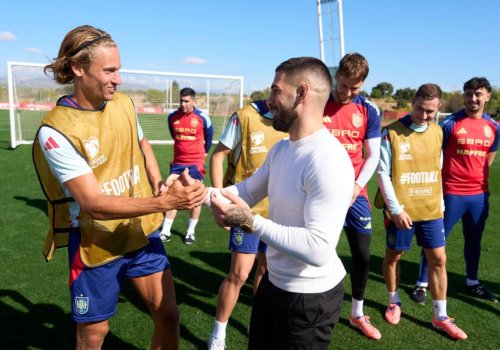 UFC нинг енгил вазн (−70 кг) чемпиони Илия Топурия Испания футбол терма жамоасининг Лас-Росасдаги "Сьюдад-дель-Футбол” базасига ташриф буюрди. У жамоага 2026 йилги Жаҳон чемпионати саралаш босқичи доирасида Грузия ва Болгария терма жамоаларига қарши бўладиган икки ўйин олдидан омад тилади.