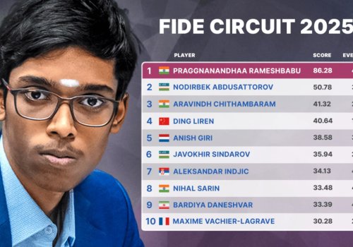 Праггнанандҳаа ҳозир FIDE Circuit'да 86,28 очко билан пешқадам. У тўртта ёпиқ турнирда тўплаган натижалари билан олдинга чиқди, лекин ҳали 50 дан ортиқ иштирокчи иштирок этадиган каттароқ очиқ турнирда ўйнамаган. Олдинда иккита ана шундай мусобақа – Жаҳон Кубоги ва Grand Swiss. Агар Праг улардан бирида кучли олтиталикдан ташқарида қолса ёки кам очко тўпласа, пешқадамлиги дарҳол хавф остида қолади.
