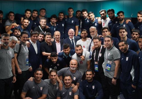 ФИФА президенти Жанни Инфантино CAFA Nations Cup финалида Ўзбекистонга қарши ўйиндан сўнг Эрон миллий терма жамоасининг кийим алмаштириш хонасига ташриф буюрди.