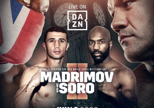 Профессионал бокснинг супер ярим ўрта вазн тоифасида (69,8 кг) WBА элиминатор жанги сифатида Исроил Мадримов ва Мишель Соро ўртасида реванш буюрилган эди. Matchroom промоутерлик компанияси жангни расман эълон қилди. Ушбу баҳс 9 июль куни Англиянинг Лондон шаҳридаги "О2" аренасида бўлиб ўтади. Асосий жангда оғир вазн вакиллари Кубрат Пулев ва Дерек Чисора ўзаро реванш жангини ўтказади.
