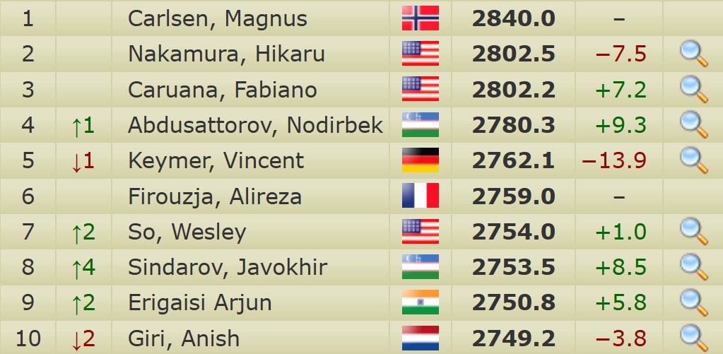 Ушбу натижа орқали Синдаров жаҳон рейтингида сезиларли ўсиш қайд этиб, 8-ўринга кўтарилди. 2753.5 рейтинг очкоси билан у эндиликда дунёнинг энг кучли саккиз нафар шахматчиси сафидан жой олди.