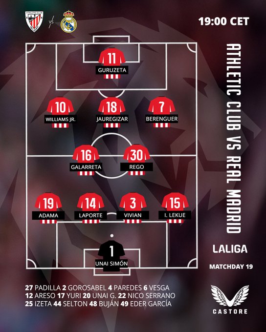 Ла Лиганинг 19-туридан олган “Атлетик” ва “Реал Мадрид” жамоаларининг учрашув учун бошланғич таркиблари билан танишинг.