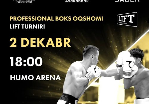Хабарингиз бор, 2 декабрь куни Тошкент шаҳридаги "Хумо Арена" ажойиб профессионал бокс оқшомига мезбонлик қилади. Янада аниқроқ қилиб айтганда, юртимизда ташкил этилган, Lift промоутерлик компанияси ўзининг навбатдаги жанг кечасини ташкил этади.