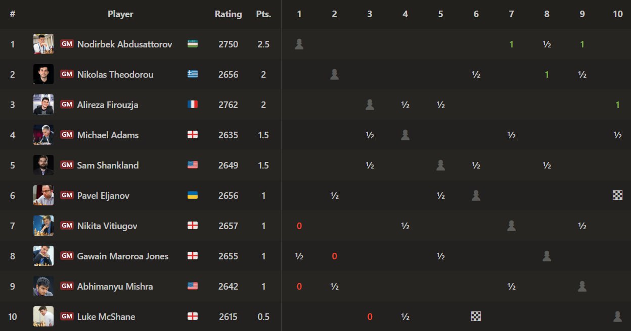 Хабарингиз бор, Лондондаги “Эмиратес Стадиум”да "London Chess Classic 2025" ўтказилмоқда. Бу йилги мусобақа 10 нафар кучли гроссмейстерлар иштирокидаги классик давра тизимидаги турнир бўлмоқда ва унда ҳамюртимиз Нодирбек Абдусатторов ҳам иштирок этмоқда.