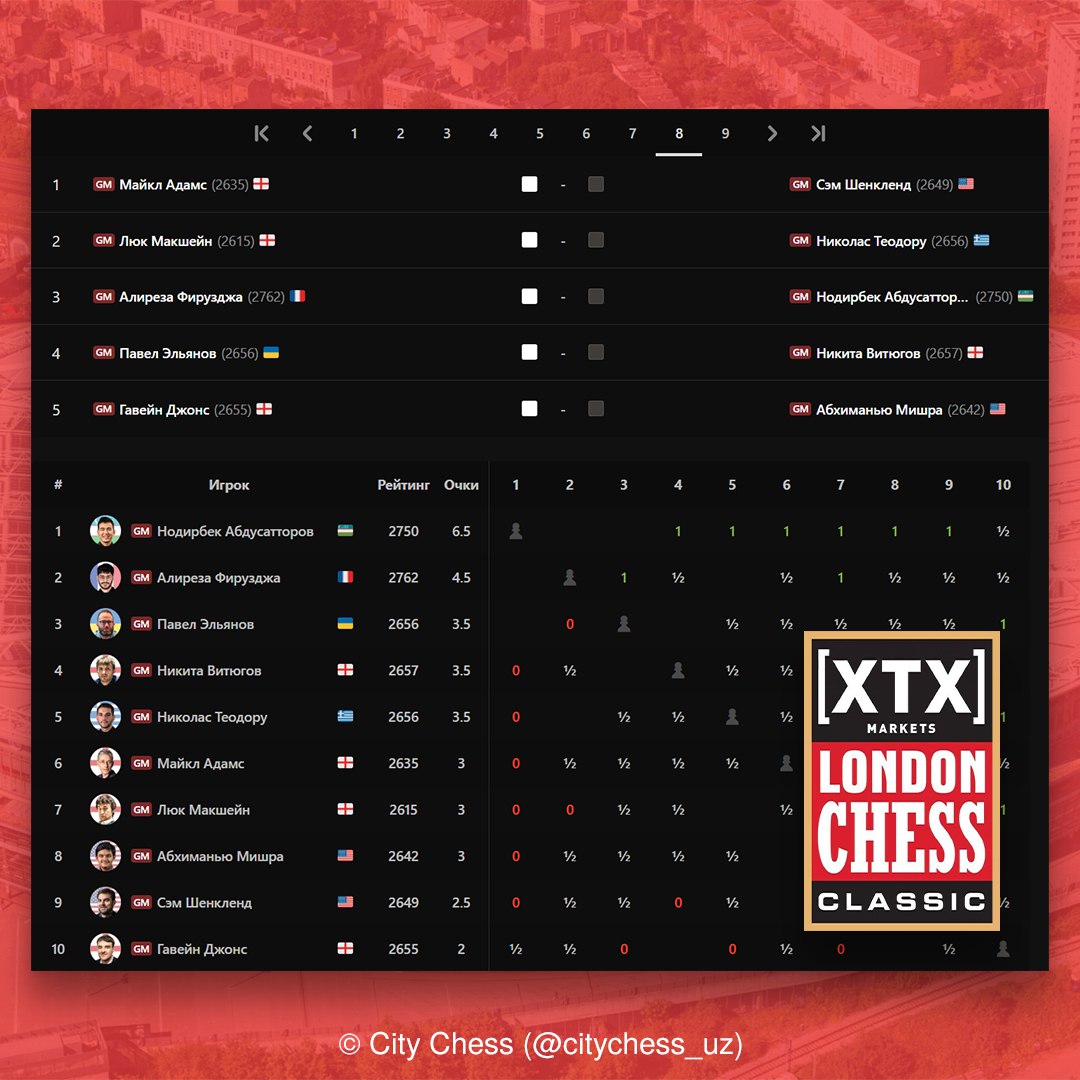 "London Chess Classic 2025": Нодирбек Абдусатторовнинг 8-турдаги рақиби ва турнир жадвали билан танишинг