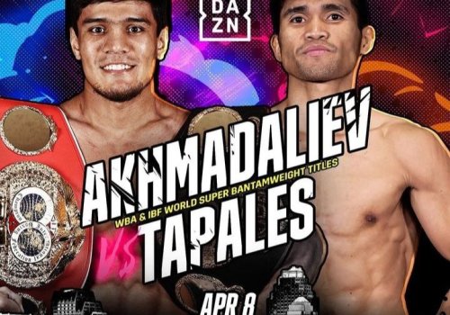Профессионал бокснинг биринчи ярим енгил вазн тоифасида (55,3 кг) WBА ва IBF камарлари эгаси Муроджон Аҳмадалиев 8 апрель куни Техас штати, Сан Антонио шаҳрида Марлон Тапалесга қарши рингга кўтарилиши расман тасдиқланди. Matchroom промоутерлик компанияси томонидан ўтказиладиган, кечанинг иккинчи асосий жанги бўладиган ушбу тўқнашув олдидан боксчилар ўз фикрлари билан ўртоқлашди.