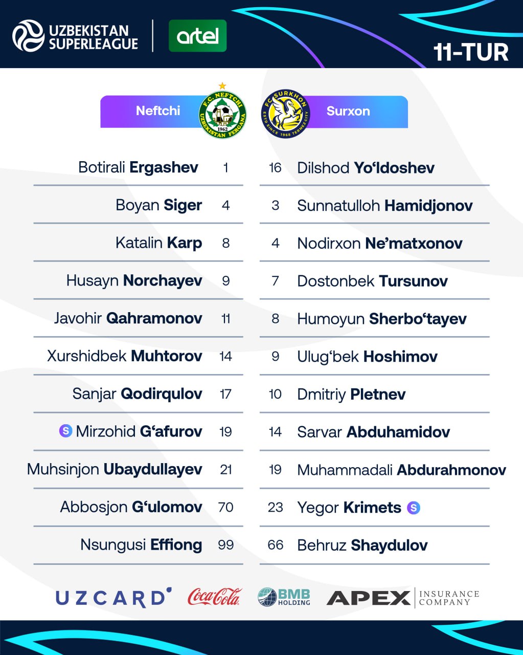 «Нефтчи» - «Сурхан». Стартовые составы команд