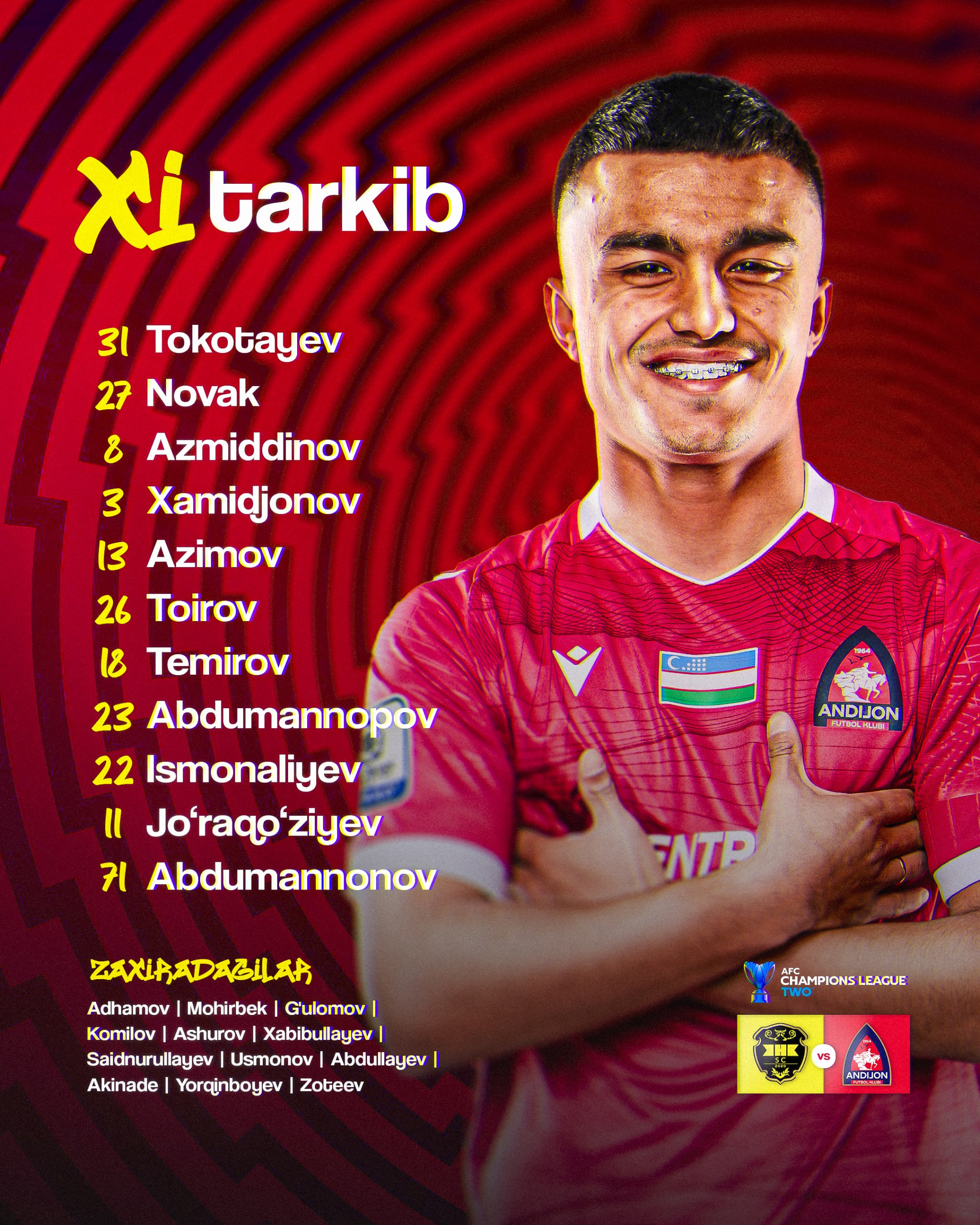 Osiyo Chempionlar ligasining 4-turidan o‘rin olgan "Andijon" - "Al Haldiya" jamoalari o‘rtasidagi to‘qnashuv boshlanish arafasida. Mazkur bellashuv uchun "burgutlar"ning boshlang‘ich tarkibi bilan tanishing.