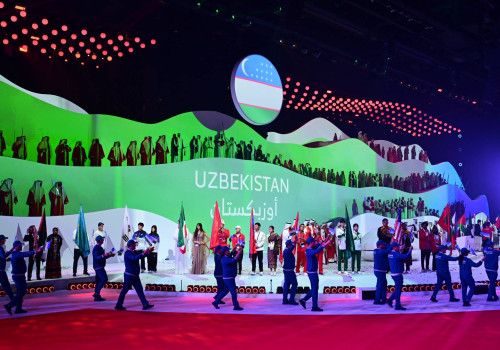 Знаменосцами делегации Узбекистана стали Азизбек Абдугаффоров (лёгкая атлетика) и Рушанахон Равшанова (таэквондо WT).