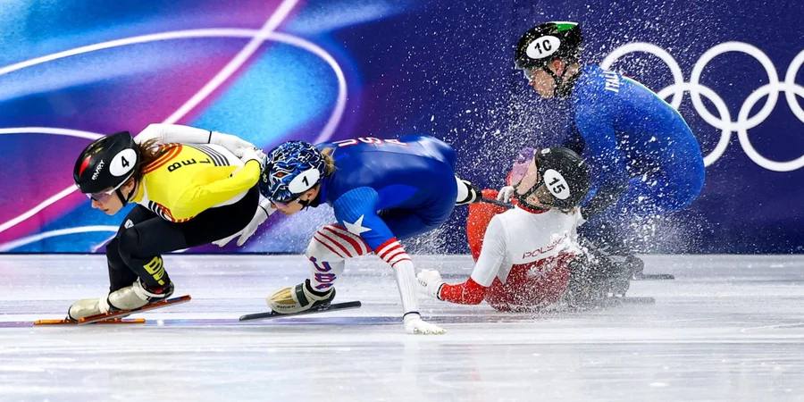Фожиа бир қадам қолганда: Даниил Эйбог саралаш баҳсларида оммавий йиқилиш пайтида бошқа спортчининг конькиси тиғи бошига жуда яқин келиб, хавфли вазият юзага келди.
