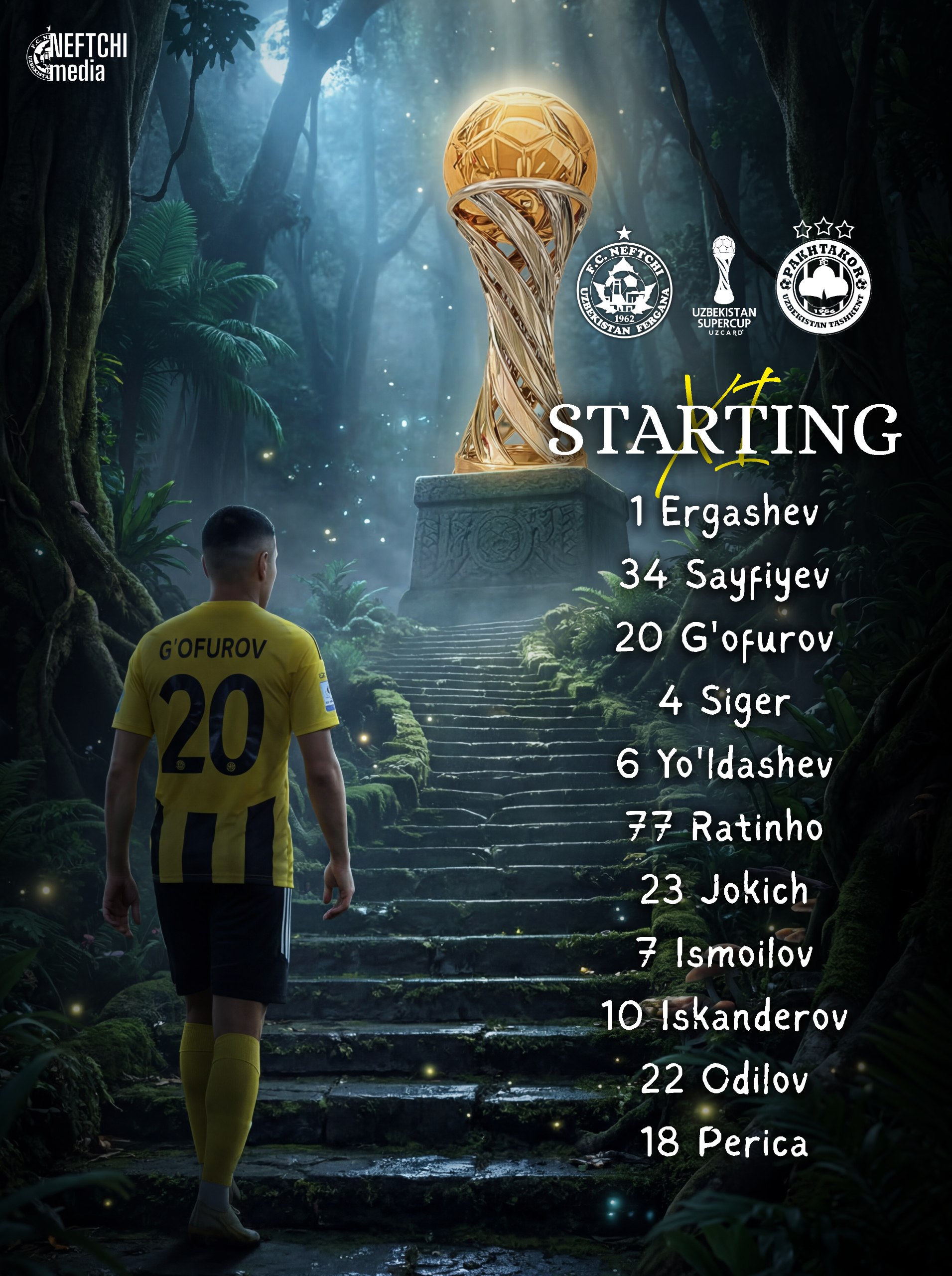 Бугун Ўзбекистон Суперкубоги финал учрашуви Андижондаги “Бобур Арена”да бўлиб ўтади. Мамлакат чемпиони Фарғонанинг “Нефтчи” клуби амалдаги Кубок соҳиби “Пахтакор”га қарши майдонга чиқади. Жамоалар ушбу беллашувни қуйидаги таркибларда бошлайди.