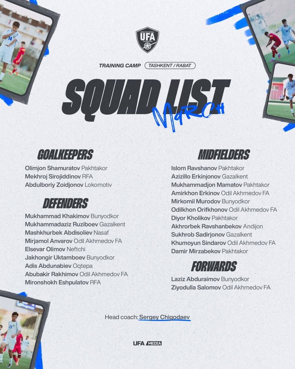 Мураббийлар штаби томонидан йиғинга жалб этилган футболчиларнинг рўйхати билан танишинг.