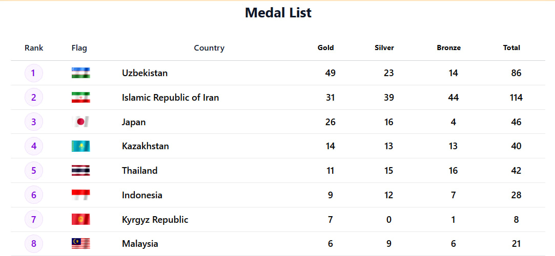 Ўзбекистон V ёшлар пара Осиё ўйинларида медаллар жамғармаси бўйича нечанчи ўринда турибди?