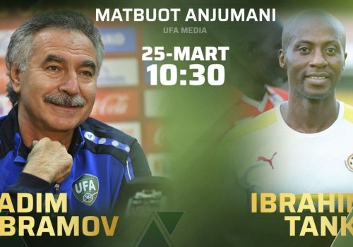 25 март куни соат 10:30да Гана терма жамоаси бош мураббийи Ибраҳим Танко журналистлар саволларига жавоб қайтаради. Шундан сўнг, соат 11:00да Ўзбекистон терма жамоаси Вадим Aбрамов анжуманда қатнашади. Бу ҳақда ЎФА матбуот хизмати хабар берди.