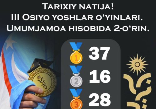 Ушбу натижанинг тарихийлиги шундаки, делегациямиз I Осиё ёшлар ўйинларида 3 та бронза, II Ўйинларда эса 1 та олтин, 2 та кумуш ва 3 та бронза медалларини қўлга киритган бўлса, бу гал мазкур рақамлар анча салмоқли кўриниш олди.