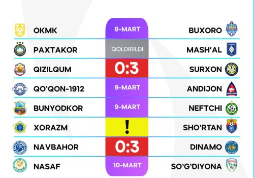 "27 феврал куни Лига У21 жамоаси тўп сурадиган майдонларга бефарқ клублар масаласида материал эълон қилган бўлиб, унда "Навбаҳор" У21 жамоасига техник мағлубият ёзилиши, "Қизилқум" У21 ва "Хоразм" У21 жамоалари эса ўз беллашувларини рақиб майдонида ўтказиши баён қилинганди.