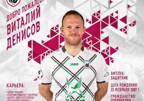 Футболчи жамоа билан 1 йиллик шартнома имзолади. Қайд этиш жоиз, Денисов эркин агент мақомида "Рубин" сафига келиб қўшилди. Юртдошимиз янги жамоасида ҳам 29-рақамда тўп суради.