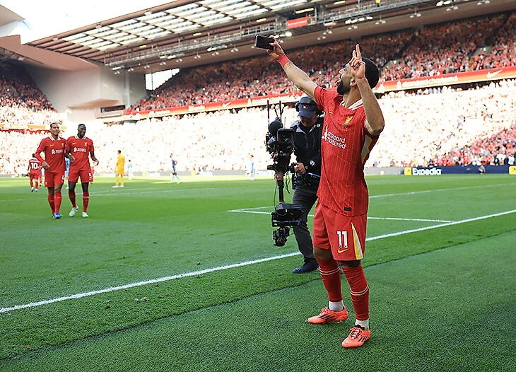 63-дақиқада Муҳаммад Салоҳ жамоасининг тўртинчи голига муаллифлик қилди ва буни ёрқин тарзда нишонлади: дарвоза ортидаги трибуна олдига югуриб бориб, клуб ходимидан смартфонни олди.