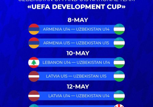 С 7 по 12 мая в Ереване состоится международный турнир, в котором будут участвовать сборные Узбекистана U15 и U14. Под руководством Айдера Курбаева сборная Узбекистана U15 сыграет против команд Армении, Грузии и Латвии. Под руководством Ларса Хоппа сборная U14 Армении, Латвии и Ливана.